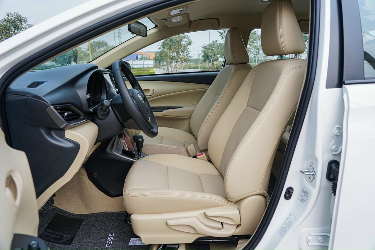 Nội thất của Toyota Vios 2023 được cải tiến với chất liệu cao cấp và hiện đại hơn. Ghế ngồi được bọc da cao cấp và được thiết kế với đường nét tinh tế, mang đến sự êm ái cho hành khách trong suốt hành trình. Màn hình giải trí trung tâm cảm ứng với kích thước lớn cũng được tích hợp trên bảng điều khiển để đáp ứng nhu cầu giải trí của khách hàng.